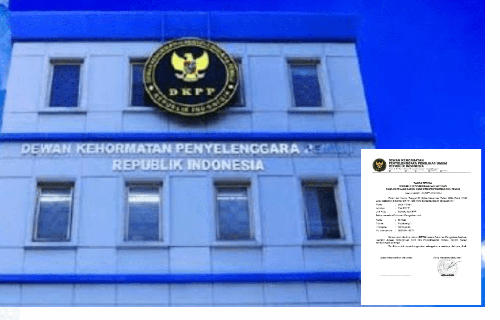 Dugaan pelanggaran tersebut telah diterima pada tanggal 21 November 2024 sesuai tanda terima dokumen pengaduan atau laporan dugaan pelanggaran kode etik penyelenggara pemilu Nomor: 642/01-21/SET-02/XIT2024.