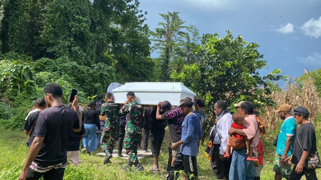 [ KEEROM ] – Dalam rangka kepedulian kepada masyarakat di wilayah binaan, Satgas Yonif 131/BRS Pos Yamara melayat dan membantu proses pemakaman warga bertempat di rumah duka Di Kp. Yanemyo, Distrik Arso Timur, Kab. Keerom, Provinsi Papua, Minggu (08/12/2024).