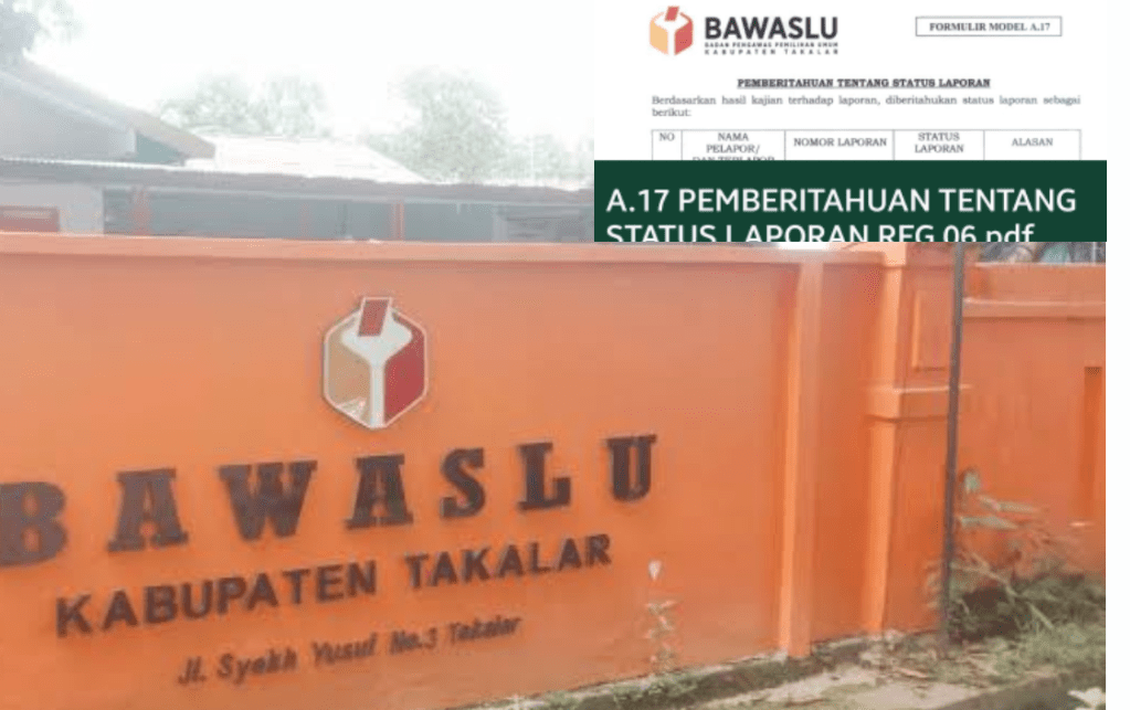 Takalar // Batasnews.id – Badan Pengawas Pemilu (Bawaslu) Kabupaten Takalar menolak sejumlah laporan dugaan pelanggaran Pilkada yang dilayangkan oleh pelapor H.Nurdin. Dalam pernyataan resminya, Bawaslu Takalar menyebut bahwa laporan tersebut tidak memenuhi unsur pelanggaran pemilihan dan tidak mengandung dugaan pelanggaran terhadap peraturan perundang-undangan lainnya.