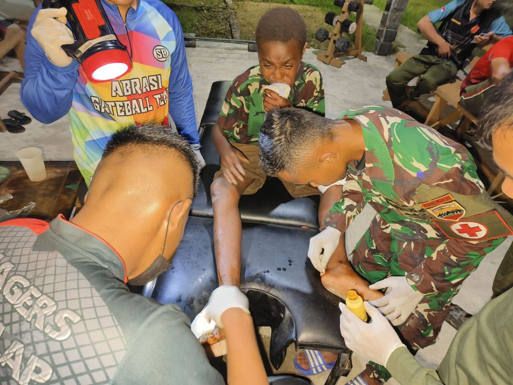 Tim kesehatan Satgas Yonif 131/BRS memberikan pengobatan untuk mencegah infeksi dan memperparah luka. Selain itu, tim juga memanfaatkan kesempatan tersebut untuk melakukan pemeriksaan kesehatan kepada anak tersebut.