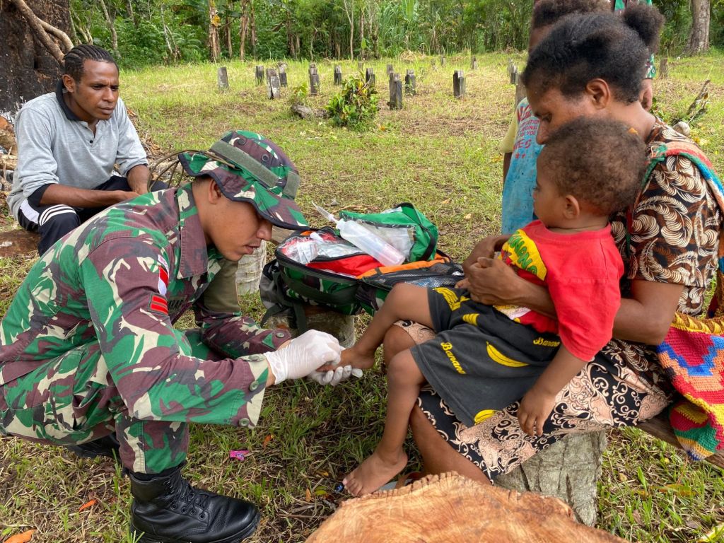 [ KEEROM ] – Satgas Pamtas RI-PNG Yonif 131/BRS mengadakan kegiatan pelayanan serta Penyuluhan Kesehatan Keliling di Perbatasan Papua tepatnya di Kp. Banda, Distrik Waris, Kab. Keerom, Prov. Papua, Selasa, (31/12/2024).