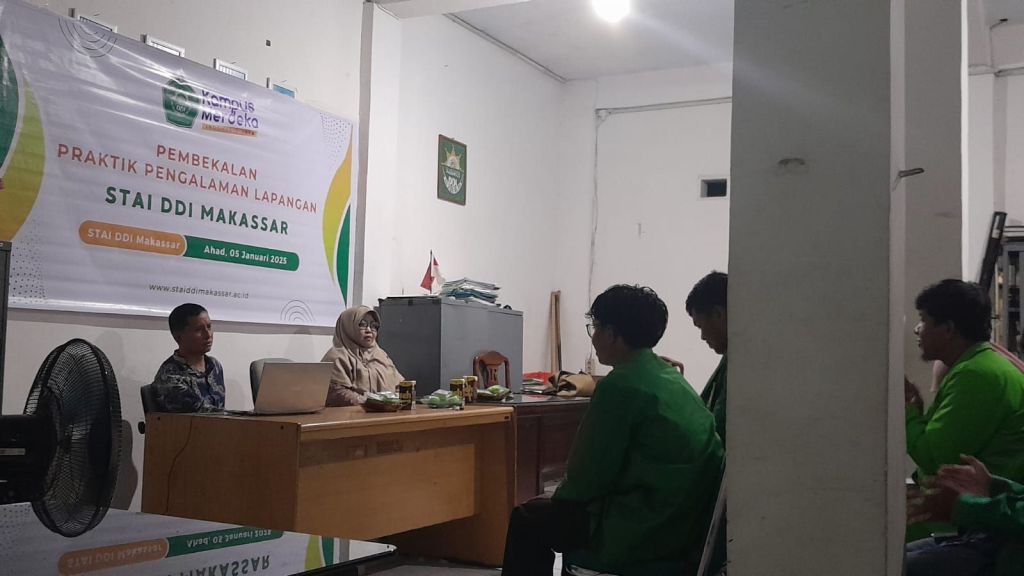 STAI DDI Makassar sedang mengadakan Pembekalan Praktek Pengalaman Lapangan di ruang rapat kampus.