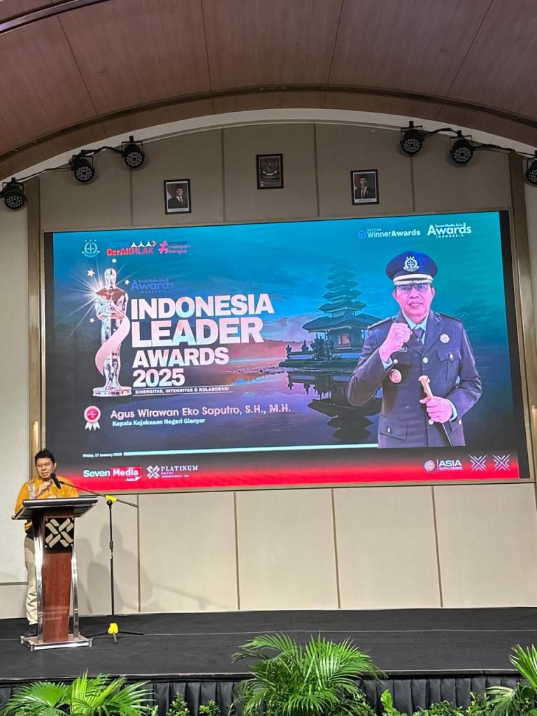 Batasnews.id Di awal tahun 2025 Kepala Kejaksaan Negeri Gianyar Agus Wirawan Eko Saputro, SH. MH mendapat penghargaan Best Leader Indonesia 2025 dalam kategori Sinergitas, Integritas dan Kolaborasi selama tahun 2024 dari Seven Media Awards pada tanggal 17 Januari 2025 bertempat di Platinum Hotel Jimbaran Beach Bali.