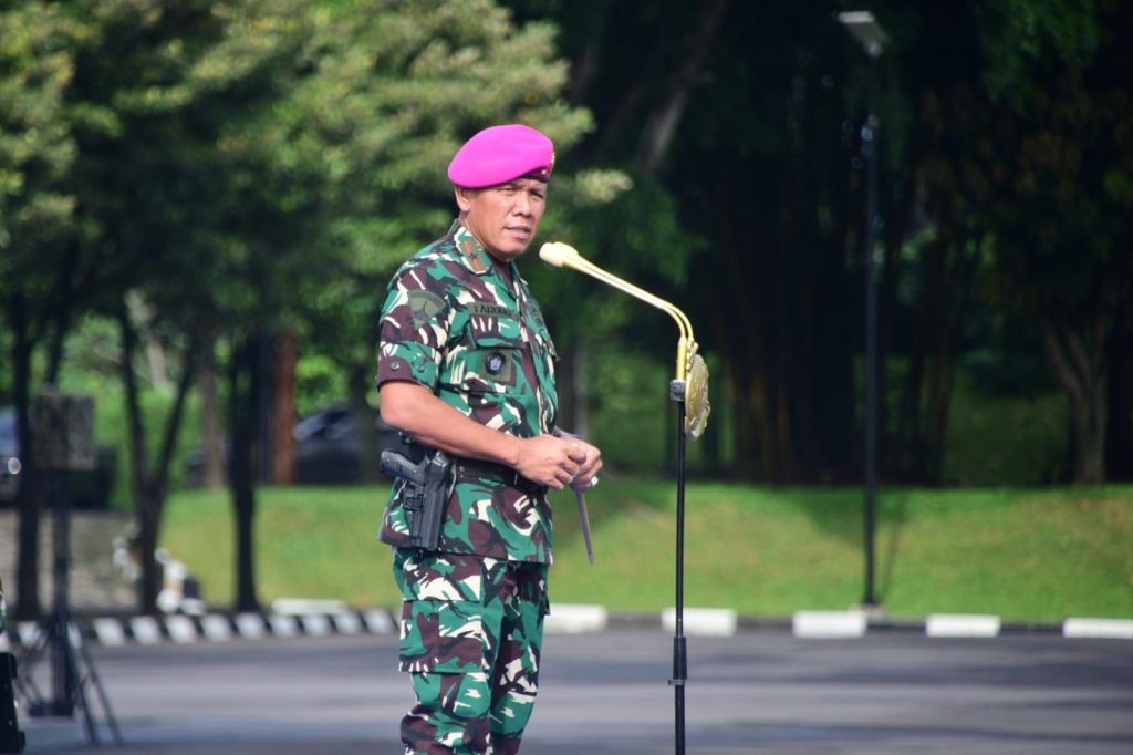 BatasNews.id[ JAKARTA ] – Komandan Pasmar 1 (Danpasmar 1) Brigjen TNI (Mar) Umar Farouq, S.A.P., CHRMP., M.Tr.Opsla., M.Han., memimpin Apel Gabungan yang diikuti prajurit Pasmar 1 wilayah Jakarta secara langsung dan prajurit Batalyon Marinir Pertahanan Pangkalan (Yonmarhanlan) I, II, IV dan XII secara Daring.