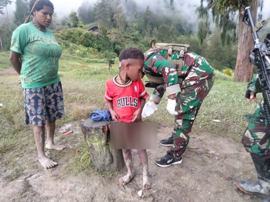 BatasNews.id[ BEOGA ] – Satgas Yonif 700 Wira Yudha Cakti melalui Pos Dambed kembali menunjukkan kepeduliannya terhadap masyarakat dengan menggelar pengobatan gratis terhadap salah satu anak warga kampung Dambed Distrik Beoga, Kab Puncak, Papua. (1/04/2025)