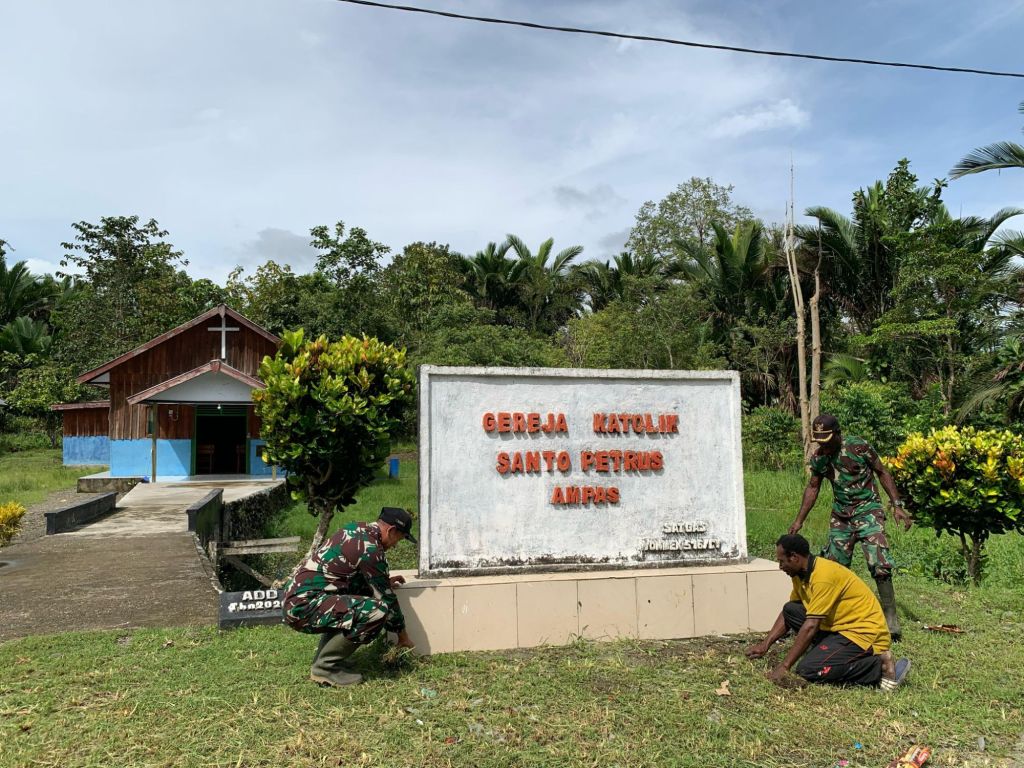 Kegiatan yang dilaksanakan pada Sabtu pagi tersebut menjadi wujud nyata sinergi antara TNI dan masyarakat perbatasan Papua dalam menciptakan lingkungan ibadah yang bersih dan nyaman. Prajurit Satgas bersama warga bahu-membahu membersihkan halaman gereja dari rerumputan liar, sampah, dan memperbaiki beberapa fasilitas sekitar gereja.