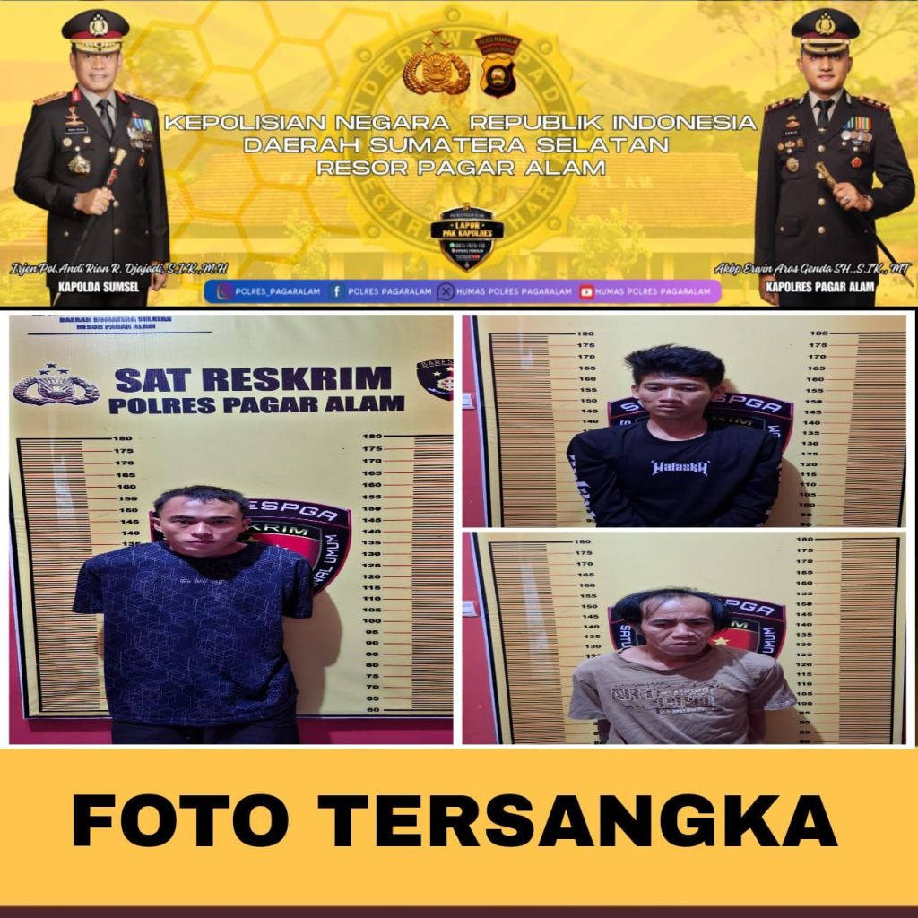 Setelah Dilakukan Penyelidikan intensif Tim Berhasil Mengamankan Tiga Orang Tersangka, Masing-masing Atas Nama Yang Berenesial MDY, DA, Dan N. Para Tersangka Diamankan Tanpa Perlawanan Dan Langsung Dibawa Ke Mapolres Kota Pagaralam Untuk Proses Pemeriksaan Lebih Lanjut.