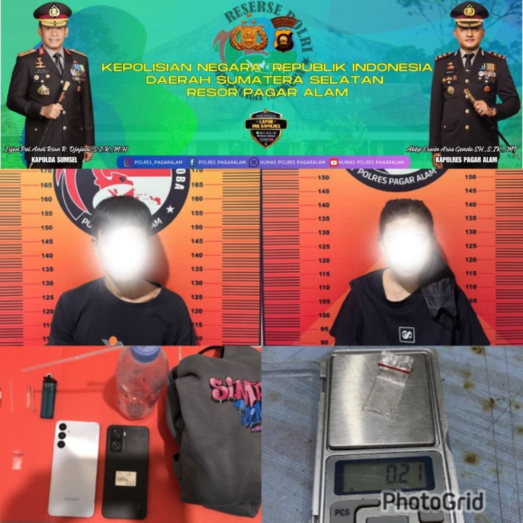 Dalam operasi tersebut, petugas berhasil mengamankan dua pelaku, yaitu Nopriansyah (25) warga Lahat dan Nurayu (19) warga Pagar Alam Selatan. Dari hasil pemeriksaan, keduanya dinyatakan positif menggunakan narkotika jenis sabu berdasarkan uji urine yang dilakukan.