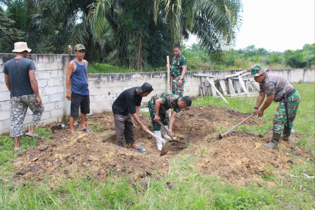 Memasuki pekan pelaksanaan TMMD, terlihat personel Satgas TMMD bersama warga Blok A bahu membahu dalam proses pembangunan MCK. Kegiatan yang berlokasi di Jalan Baru Blok A RT 14 ini menunjukkan progres yang menggembirakan. Material bangunan seperti bata, semen, pasir, dan perlengkapan sanitasi lainnya tampak sudah tersedia di lokasi, siap untuk dirakit menjadi fasilitas yang sangat dibutuhkan masyarakat.