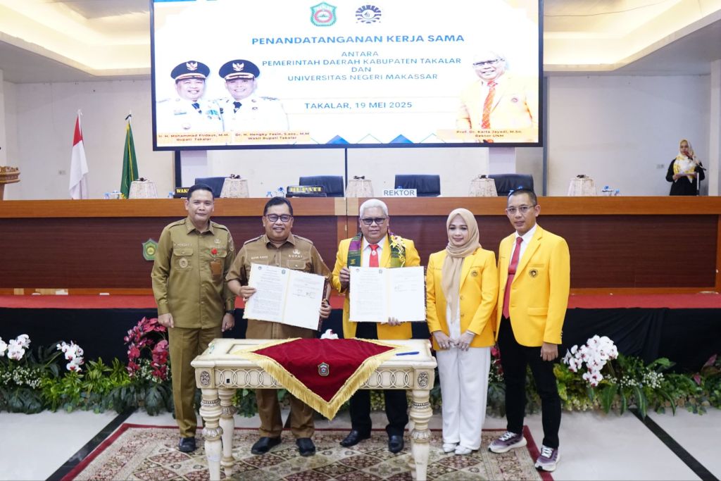 Bupati Takalar Ir. H. Mohammad Firdaus Daeng Manye,.MM didampingi Wakil Bupati Takalar Dr. H. Hengky Yasin,.S.Sos,.MM melakukan Penandatangan Kerjasama dengan Universitas Negeri Makassar (UNM) di Ruang Pola Kantor Bupati Takalar, Senin 19 Mei 2025.