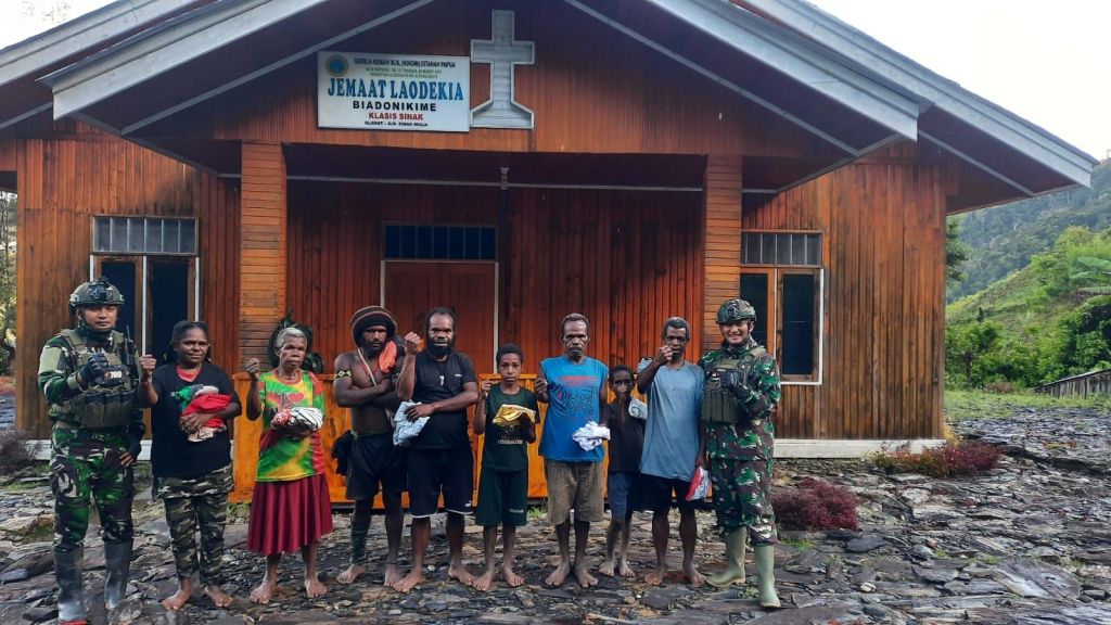 Momen itu menjadi saksi bisu betapa kuatnya ikatan kebangsaan. Di tengah kesederhanaan gereja kayu dan jalan setapak berbatu, para prajurit TNI dan warga saling berpelukan, berbagi cerita, dan tertawa bersama. Ini adalah Indonesia sejati—di mana keberanian, cinta kasih, dan pengorbanan bersatu dalam satu tekad: Satu Nusa, Satu Bangsa.