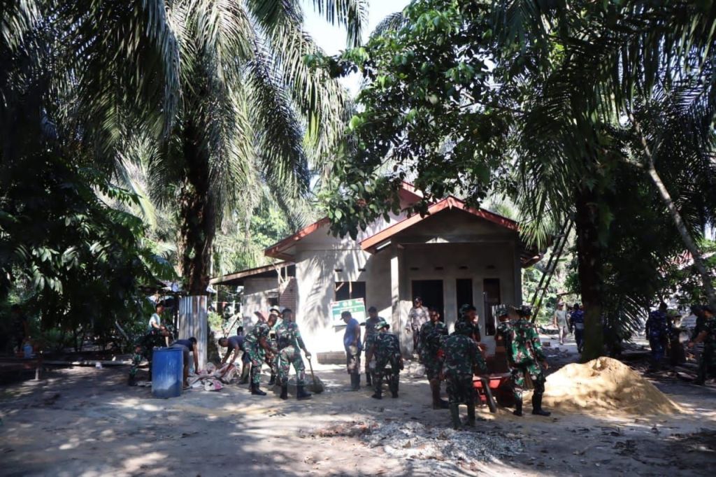 Tim Satgas TMMD ke-124, bersama dengan warga masyarakat, bahu-membahu merampungkan tahap demi tahap pembangunan rumah Bapak Sisu. Semangat gotong royong terlihat jelas di lokasi, di mana pekerjaan fisik seperti pemasangan atap, dinding, serta pengerjaan semi interior sudah hampir rampung. Material bangunan yang berkualitas juga dipastikan terpasang dengan baik demi menjamin kenyamanan dan keamanan bagi keluarga Bapak Sisu.