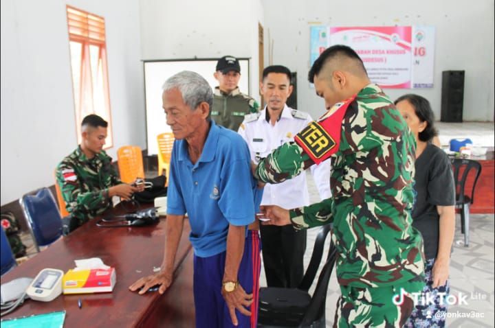 Batasnews.id[ NANGA BADAU ] – Tim Kesehatan Kotis Nanga Badau Satgas Pamtas RI-Malaysia Yonkav 3/Andhaka Cakti, membantu Petugas Puskesmas pelayanan Posyandu Pengobatan Lansia di Ds. Sebindang Kec. Badau Kab. Kapuas Hulu. Rabu, (4/6/2025).