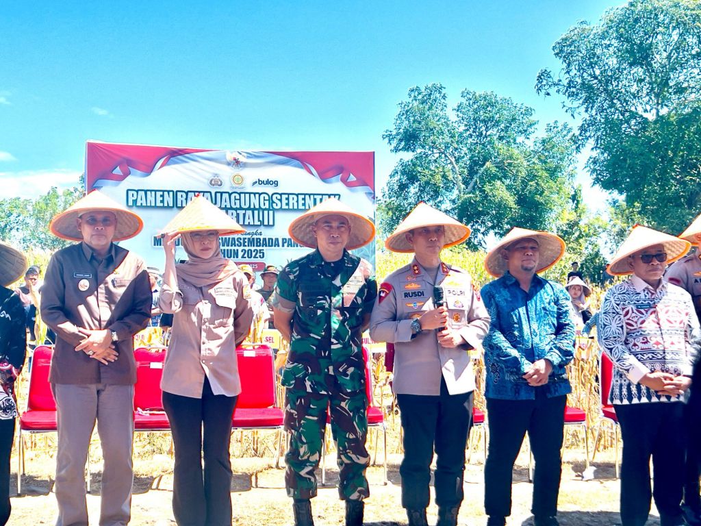 Panen dipimpin Presiden Prabowo Subianto secara virtual didampingi Menteri Pertanian Amran Sulaiman, Kapolri Jenderal Listyo Sigit Prabowo, dan Panglima TNI Agus Subianto.