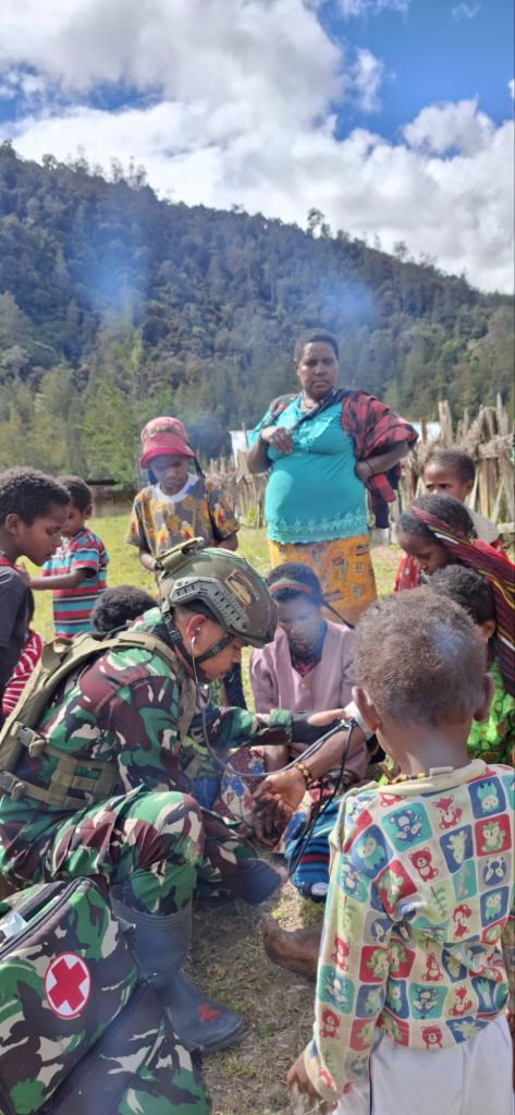 Batasnews.id[ PAPUA ] – Suasana haru dan penuh kehangatan terasa di Kampung Mayuberi, Distrik Ilaga Utara, Kabupaten Puncak. Di tengah lanskap pegunungan yang sunyi dan jauh dari hiruk-pikuk kota, sekelompok prajurit TNI dari Satgas Yonif 700 Wira Yudha Cakti (WYC) mendatangi warga setempat bukan dengan senjata, melainkan dengan stetoskop dan tensimeter. ( 11/6/2025)