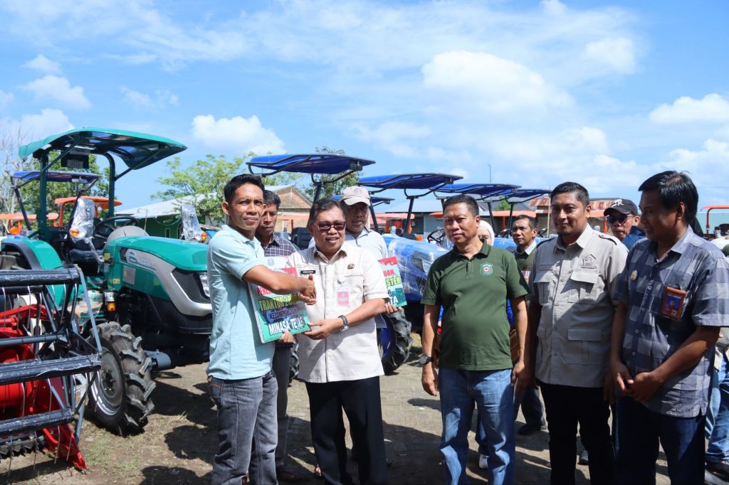 Adapun bantuan yang diserahkan berupa Combain Harvester, Traktor 4 Roda dan Traktor 2 Roda.