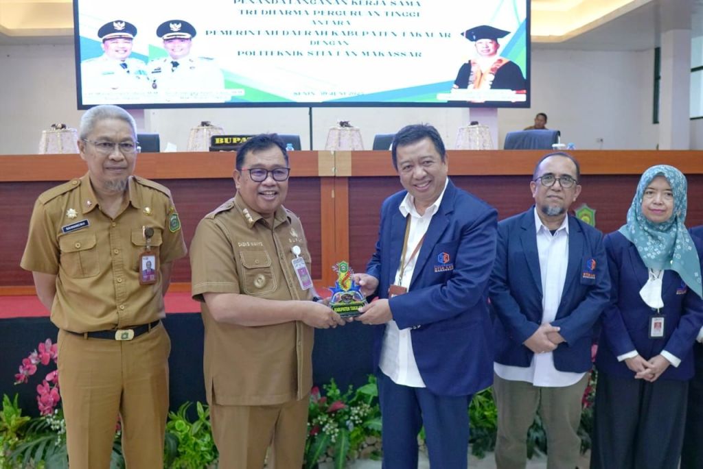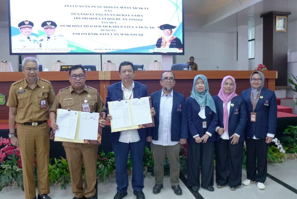 Bupati Takalar Ir. H. Mohammad Firdaus Daeng Manye,.MM menghadiri Pelepasan Pengabdian Masyarakat Politeknik STIA LAN Makassar, serta Penandatangan kerjasama Tri Dharma Perguruan Tinggi Antara Pemerintah Kab. Takalar dengan Politeknik STIA LAN Makassar, Senin (30/6/2025) di Ruang Pola Kantor Bupati Takalar.