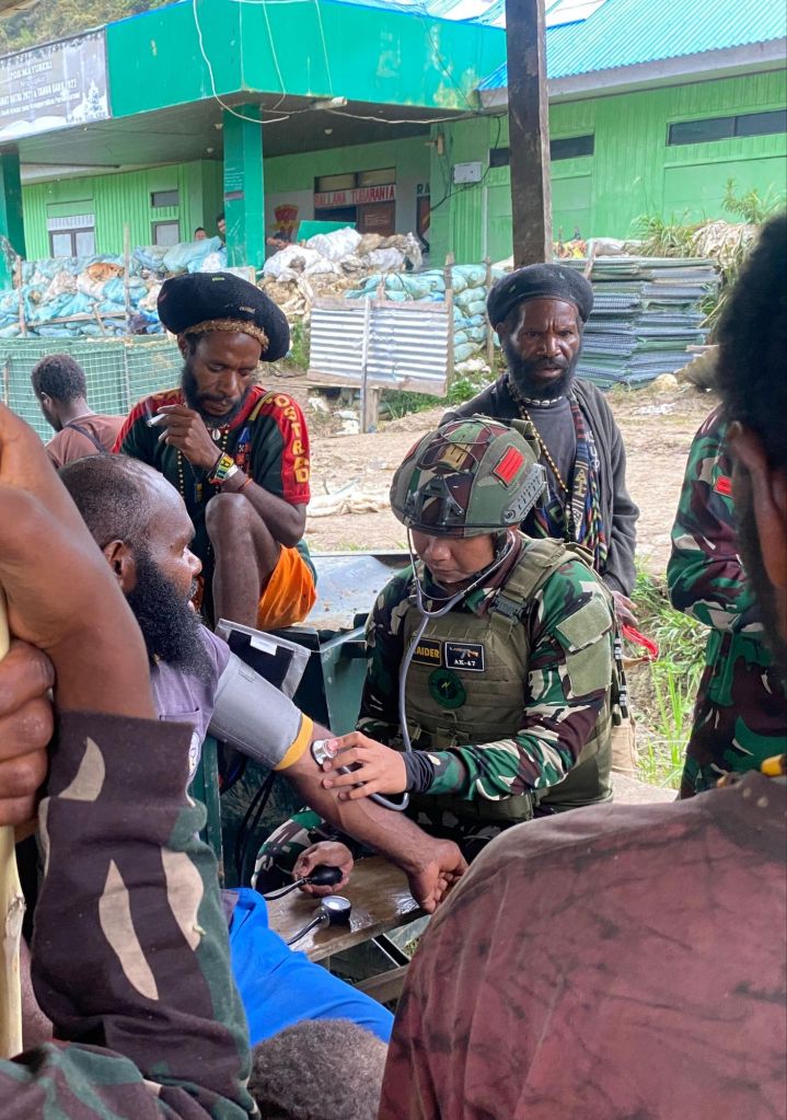 “Sejak Puskesmas kami berdiri tahun 2019, tidak pernah ada tenaga kesehatan dari pemerintah yang datang. Mereka takut. Ancaman OPM membuat kami kehilangan akses layanan dasar. Tapi Pos TNI ini—tempat inilah yang jadi penyelamat kami. Kami berobat ke sini. Kami sangat terbantu,” ungkap Anis dengan mata yang tidak mampu menyembunyikan rasa haru.