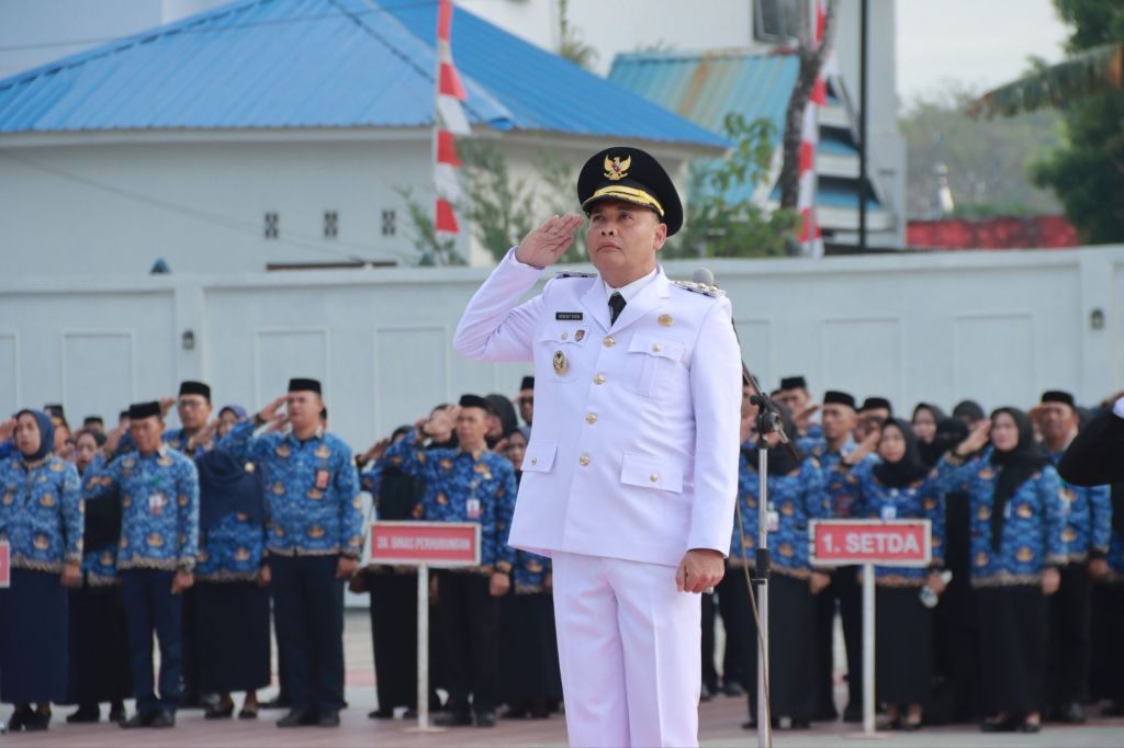 Wakil Bupati Takalar Dr. H. Hengky Yasin,. S.Sos,.MM bertindak selaku Inspektur Upacara yang dihadiri Sekda Takalar, para Staf Ahli Bupati, Asisten Setda Kab. Takalar, Pimpinan OPD Kab. Takalar, para Kepala Bagian Setda Kab. Takalar serta para ASN Lingkup Kab. Takalar, Minggu 17/8/2025.