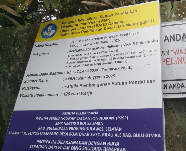 Diketahui UPT SMKN 5 Bulukumba mendapatkan kucuran dana sebesar Rp.547.147.400.00, yang bersumber dari dana anggaran pendapatan belanja negara (APBN) Tahun 2025.