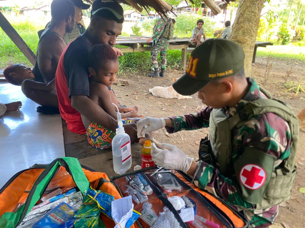 Selain memberikan pelayanan kesehatan, kegiatan ini juga menjadi ajang silaturahmi dan mempererat hubungan antara TNI dan masyarakat. Kehangatan kebersamaan terlihat jelas saat warga dan personel saling bercengkerama, mencerminkan semangat pengabdian tanpa batas di wilayah perbatasan.