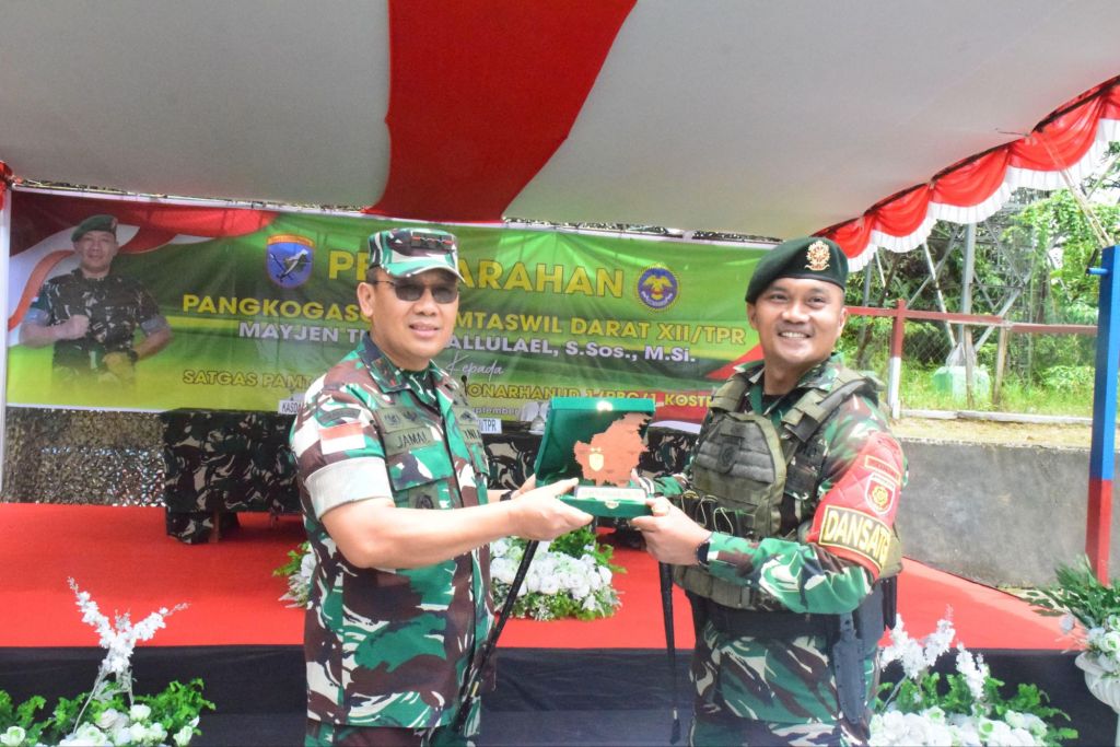 Batasnews.id[ ENTIKONG, KALBAR ] – Satgas Pamtas RI–Malaysia Yonarhanud 1/PBC/1 Kostrad menerima kunjungan resmi dari Pangkogasgabpamtaswil Darat XII/Tanjungpura, Mayjen TNI Jamalluael, S.Sos., M.Si., di Pos Kotis Gabma Entikong. (19 September 2025). Kunjungan ini turut dihadiri sejumlah pejabat dari Kodam XII/Tanjungpura sebagai bentuk dukungan dan apresiasi atas kinerja Satgas dalam menjaga wilayah perbatasan sekaligus dalam rangka menyambut HUT TNI Ke – 80 Tahun.