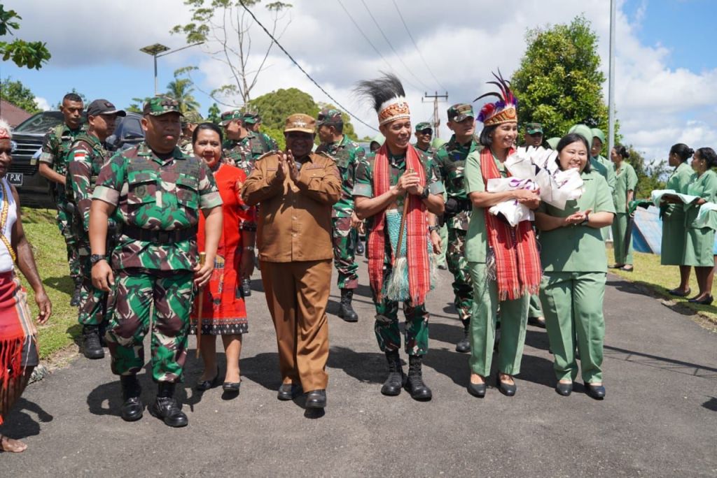 Kunjungan kerja ini turut dimeriahkan dengan tarian adat Papua yang menjadi simbol sambutan hangat masyarakat kepada Pangdam dan rombongan.