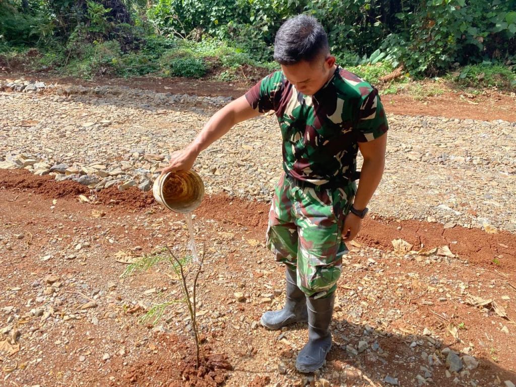 Batasnews.id[ PANDEGLANG, 30 Oktober 2025 ] – Dalam rangka mendukung program penghijauan dan menjaga kelestarian lingkungan hidup di wilayah pedesaan, anggota Satuan Tugas TNI Manunggal Membangun Desa (Satgas TMMD) ke-126 Kodim 0601/Pandeglang melaksanakan kegiatan penyiraman pohon serta pematokan tanda pada tanaman yang telah ditanam di sepanjang jalan hasil pembangunan TMMD. Kegiatan ini dilakukan dengan penuh semangat dan rasa tanggung jawab di bawah terik matahari, sebagai wujud nyata kepedulian prajurit TNI terhadap keberlangsungan lingkungan.