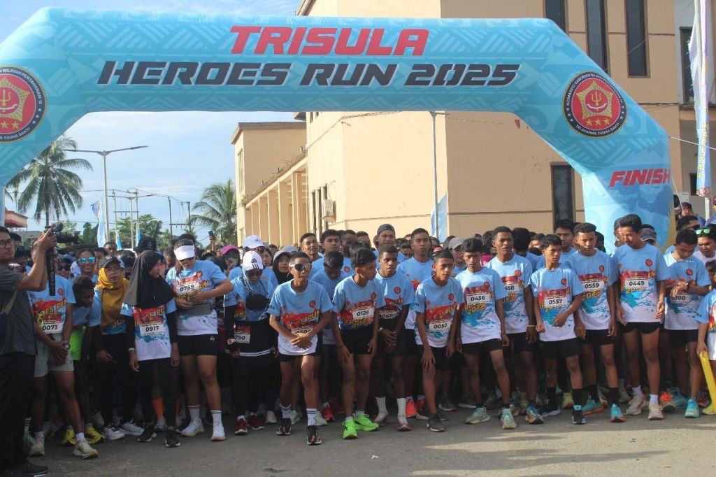 Lebih dari 1.500 pelari tumplek di sekitar Gedung Eme Neme Yauware, titik start dan finish dari ajang bergengsi Trisula Heroes Run 2025 yang digelar oleh Kogabwilhan III.