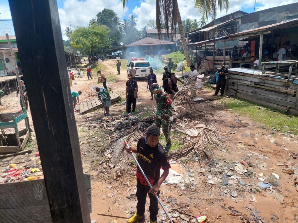 Sasaran utama pembersihan adalah area pasar dan pelabuhan Distrik Haju, dua titik yang menjadi pusat aktivitas masyarakat sehari-hari. Personel satgas bersama warga bergotong royong membersihkan sampah, merapikan fasilitas umum, serta memastikan lingkungan tetap nyaman dan sehat.