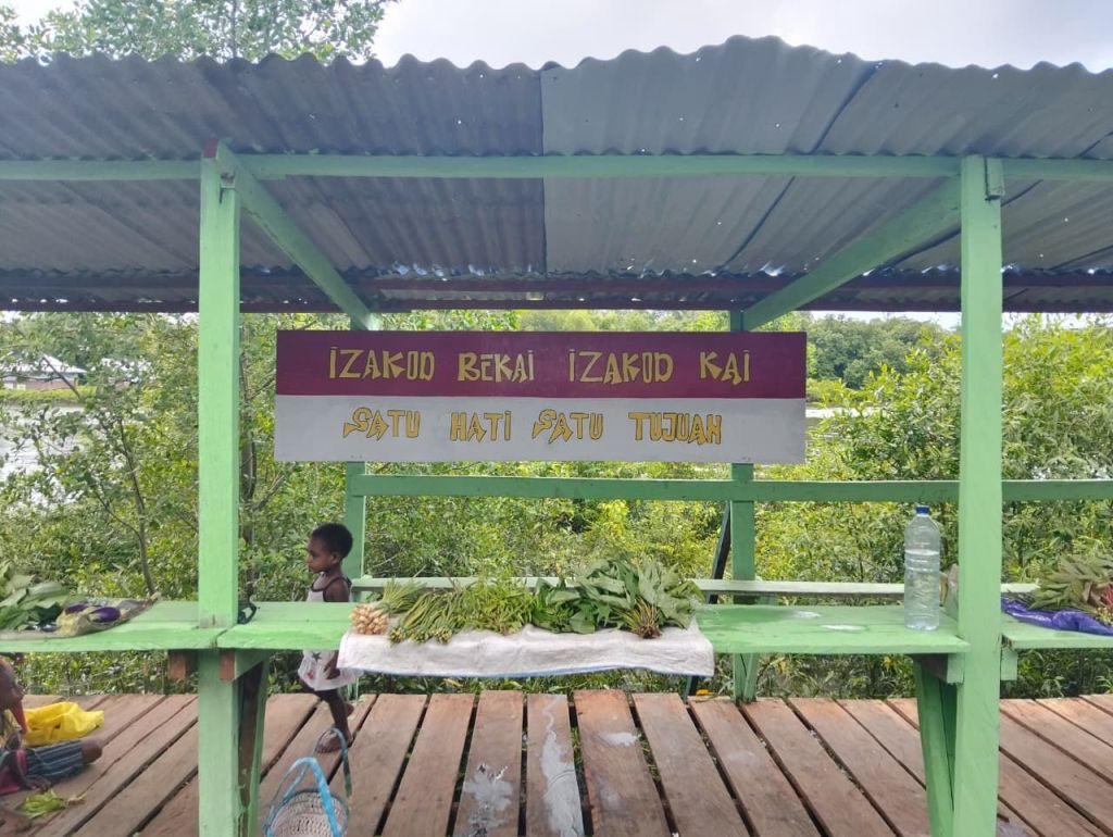 Pembangunan pasar yang dibangun secara gotong-royong antara Satgas TNI dan warga masyarakat sudah bisa digunakan dalam kegiatan berjualan sehari-hari.