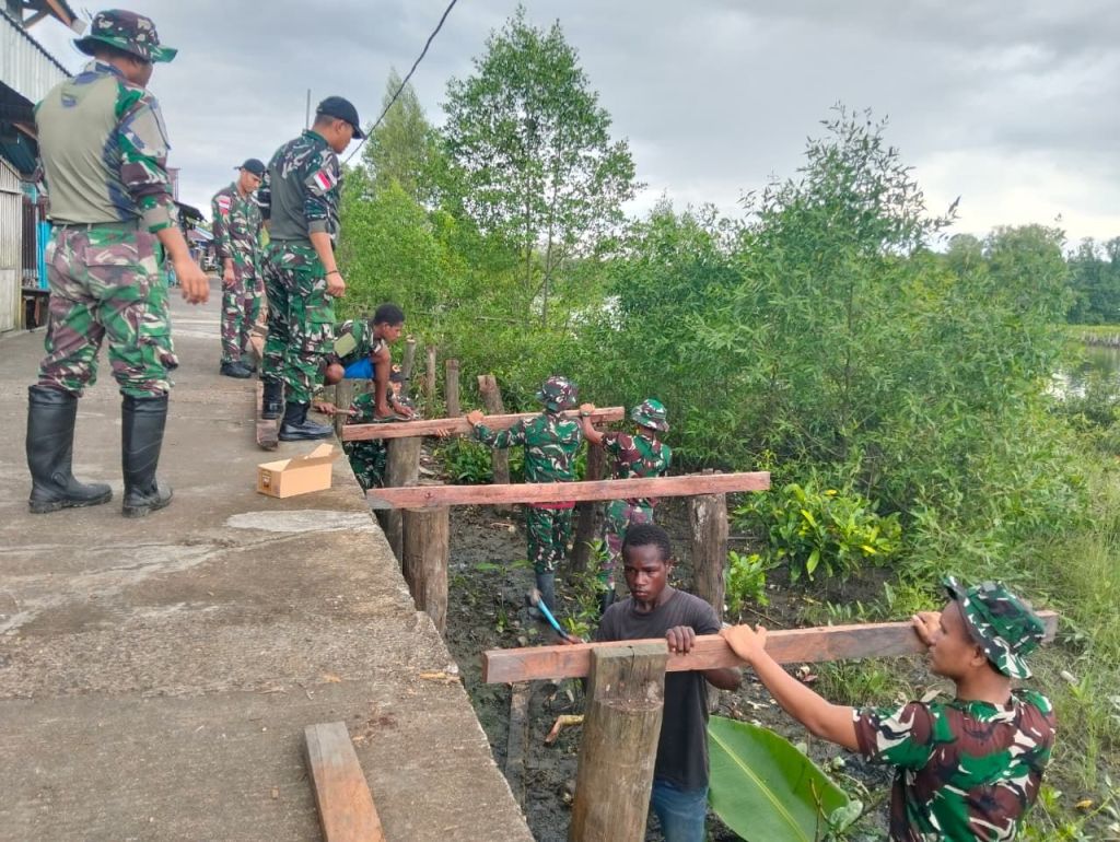 Batasnews.id[ FAYIT ] – Dalam rangka memperingati Hari Juang Kartika, Satuan Tugas (Satgas) Yonif 123/Rajawali Pos Fayit melaksanakan kegiatan pembangunan pasar untuk masyarakat yang berjualan di Kampung Ayis, Distrik Fayit, Papua Selatan, Senin (15 Desember 2025). Kegiatan ini bertujuan untuk memberikan fasilitas yang lebih nyaman dan teratur bagi para pedagang setempat, sekaligus wujud kepedulian TNI terhadap kesejahteraan masyarakat.