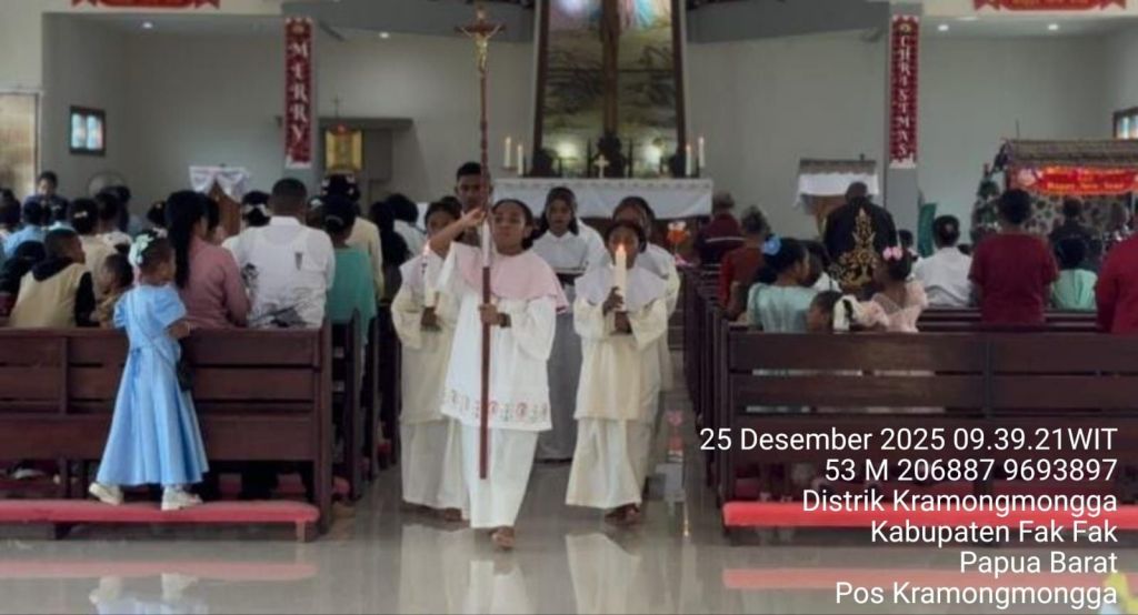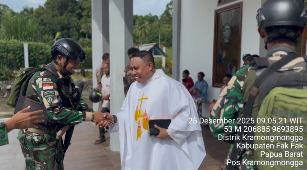 Batasnews.id[ FAKFAK ] – Dalam rangka memberikan rasa aman dan nyaman kepada masyarakat yang melaksanakan ibadah Hari Raya Natal, Pos Kramamongga melaksanakan kegiatan pengamanan ibadah Natal di Gereja Santo Petrus, Distrik Kramamongga, Kabupaten Fakfak, Provinsi Papua Barat, Kamis (25/12/2025).